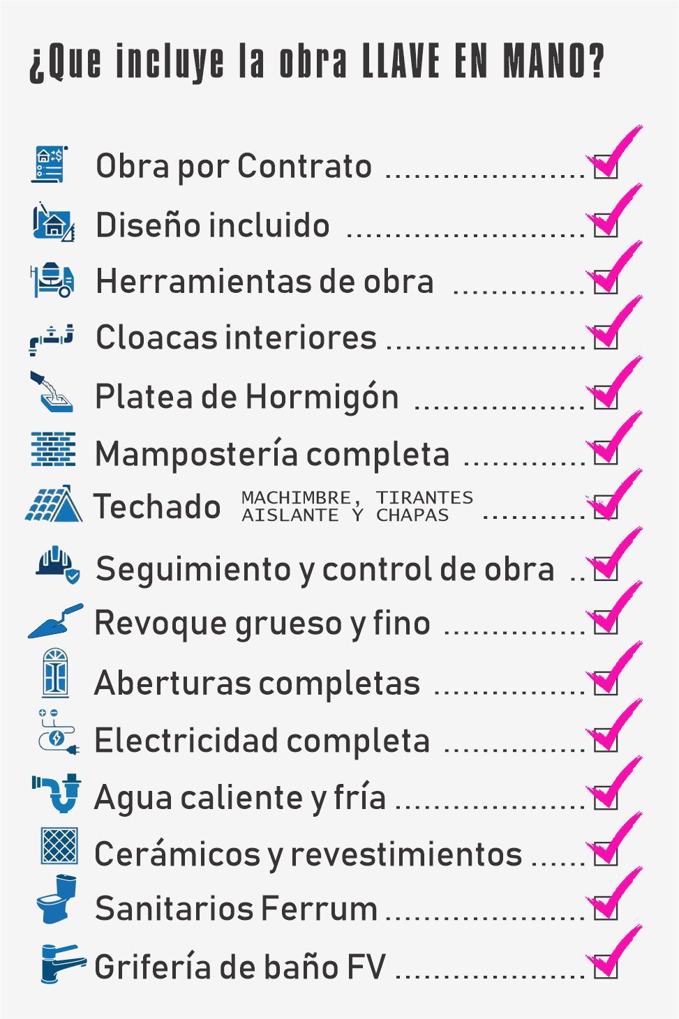 Para construcciones especiales, de dos o mas plantas, y dos o mas baños, solicite cotización de obra al 2664-837537 via llamada o whatsapp.